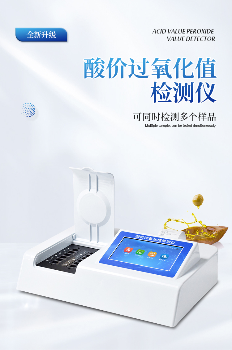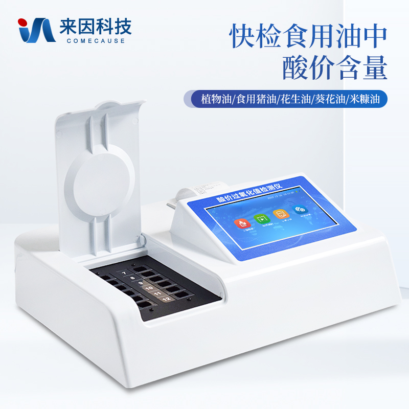 食用油酸价检测仪为集成化油品快速检测分析设备,能够快速检测食用植物油、食用猪油、花生油、葵花油、米糠油、食品、肉制品中的酸价含量;通过检测可确定植物油是否符合国家标准或是否为劣质油、地沟油等。仪器预留其他项目检测程序和端口,根据日后需求可方便的自主增加检测项目。日后可升级为检测水产品、面制品的综合类型仪器。
